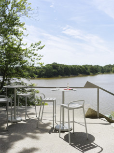 LINEAR STEEL lauko baldų kolekciją papildo stilingos pusbario/ baro aukščio kėdės. Pagamintos iš patvaraus, ultravioletiniams spinduliams atsparaus dažyto plieno jos įkūnija LINEAR STEEL serijai būdingą estetiką bei nepretenzingą eleganciją. Sėdimojoje dalyje esantys tarpeliai užtikrina efektyvų lietaus ar sniego pašalinimą bei galimybę baldu džiaugtis bet kokiu oru. Išskirtinį efektą kuria ir įspūdinga, papildyta spalvinė gama. Klasika, bet kitaip.
