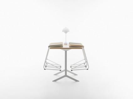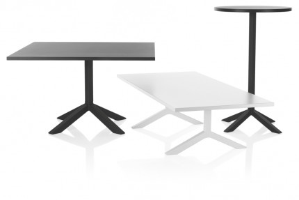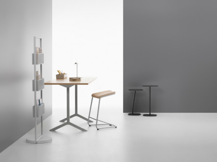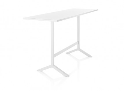 FUNK TABLE 90/ 110 – tai pusbario/ baro cm aukščio stalai, tinkantys tiek valgomoji, tiek ir darbo erdvėse. Jūsų pasirinkimui įvairaus dydžio, formų bei apdailų stalviršiai dengti melaminu arba uosio lukštu, derinami su charakteringomis FUNK dažyto/ poliruoto aliuminio kojelėmis.