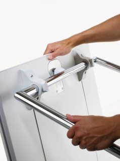 QUICKLY stalų dizaino ašis – efektyvumas. Vienas judesys ir QUICKLY paruoštas naudoti! Kompaktiškos, itin paprastai susilankstančios kojelės su quick-lock mechanizmu užtikrina paprastą ir saugų manevravimą.