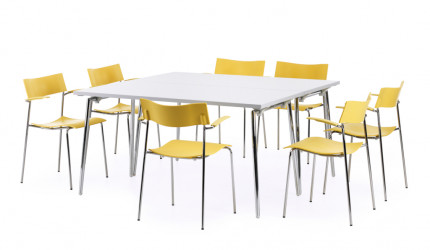 QUICKLY kolekcijoje sulankstomi stalai su dviejų skirtingų tipų kojelėmis: standartinės ir T formos. Serijos funkcionalumą papildo ir įvairūs aksesuarai: jungiamieji mechanizmai, pertvaros, užtavros bei vežimėlis padedantis be vargo sandėliuoti ar pervežti papildomus ir nenaudojamus stalus.