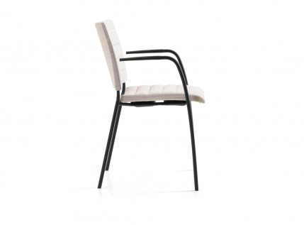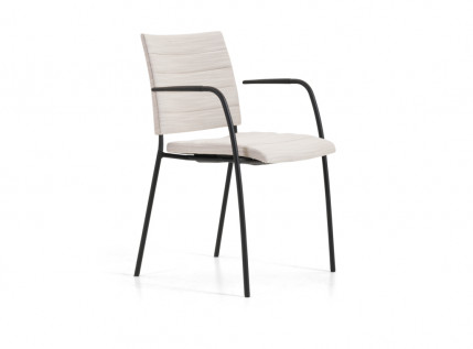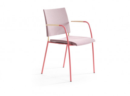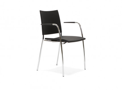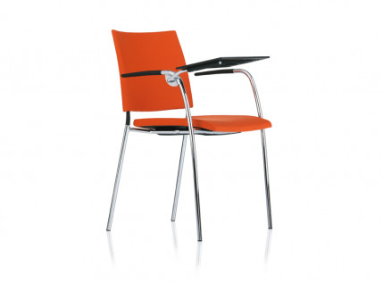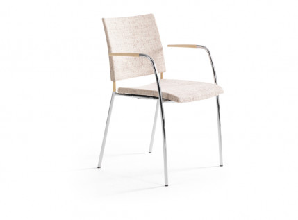 SPIRA ARMCHAIR 4 LEGS – kėdės versija su porankiais, natūralaus medžio atlošu, apvilkta sėdimąja dalimi bei keturiomis dažyto arba chromuoto plieno kojelėmis. Pageidaujant kėdės nugarėlė taip pat gali būti velkama audiniu/ oda. Prie porankių taip pat gali būti montuojamas nešiojamojo kompiuterio laikiklis/ stalelis.