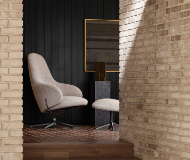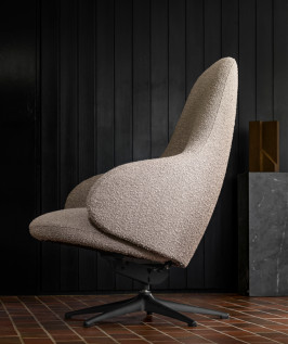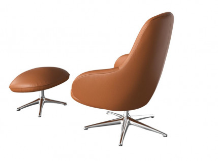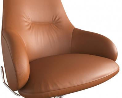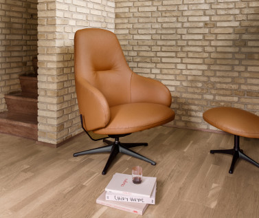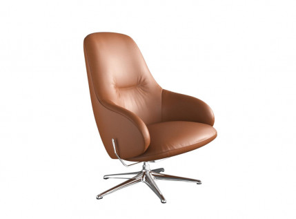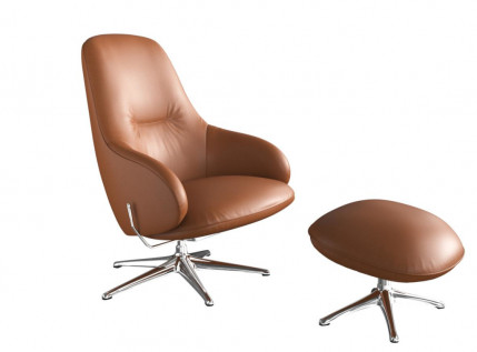 Organiškų formų fotelis FALCONE, papildys kiekvieną šiuolaikinį interjerą. Sukama kojelių bazė ir atsilošimo funkcija leidžia rasti puikiausią rakursą erdvėje ir patogiausią sėdėjimo kampą Jūsų poilsiui. Siūlomos dvi kojelių apdailos ir platus audinių bei odų pasirinkimas. Šis modelis gali būti poruojamas su pakoju.