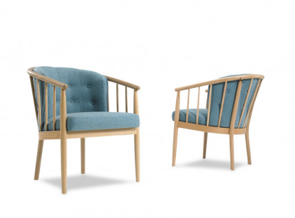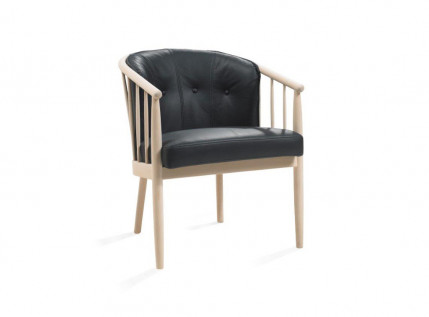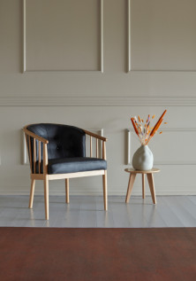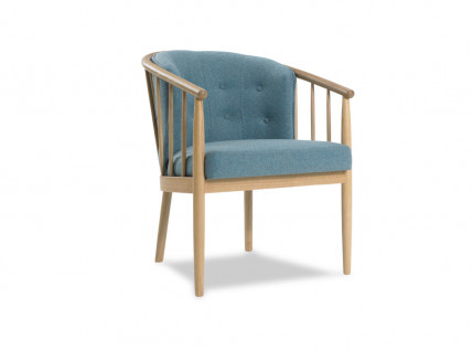 Žavus ir charakteringas ANDRUP krėsliukas, kviečia prisėsti pokalbiui, stilingai. Charakteringa dizaino detalė, iš tekintų medienos strypelių suformuotas atlošas, sukuria jaukią atramą sėdinčiąjam, o tuo pačiu palieka papildomai erdvės ir nevaržo judesių. Minkšta atraminė pagalvė gali būti dekoruojama 8 sagutėmis arba be jų.