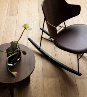 THE PENGUIN ROCKING CHAIR | UPHOLSTERED SEAT – kėdės versija, gaminama iš ąžuolo arba riešuto lukšto dengtos presuotos medžio faneros, sėdimoji dalis velkama įvairiais audiniais/ oda.