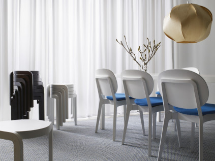 Išskirtinio sudėtingumo gamybos proceso metu pagaminama kėdė, žavinti statiškoje formoje įkūnyta dinamika. Serijoje valgomojo ir pusbario aukščio kėdės.