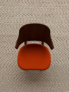 THE PENGUIN DINING CHAIR | UPHOLSTERED SEAT – kėdės versija, gaminama iš ąžuolo arba riešuto lukšto dengtos presuotos medžio faneros, sėdimoji dalis velkama įvairiais audiniais/ oda.