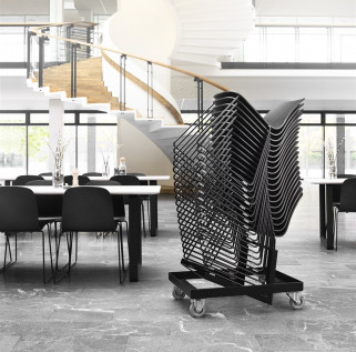 Galimybė rinktis kėdę paminkštinta sėdimąja dalimi, vilktą audiniu arba oda.