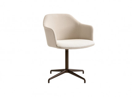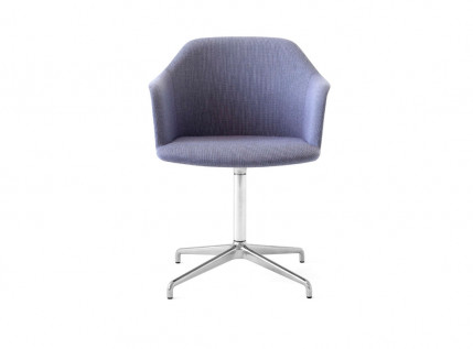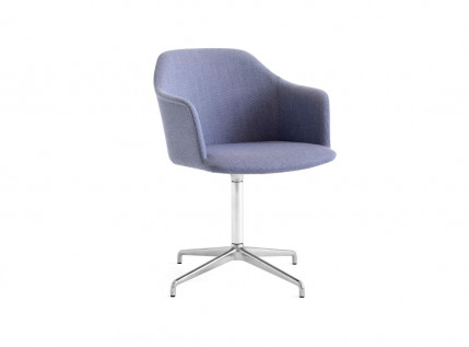 RELY HW45 – pilnai audiniu/ oda apvilkta kėdė su porankiais, derinama su subtilia, iš aliumino pagaminta sukama baze su grįžimo funkcija.