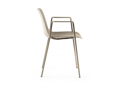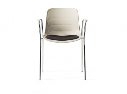 GRADE ARMCHAIR 4 LEGS – kėdės versija su porankiais bei keturiomis chromuoto arba dažyto plieno kojelėmis. Kėdės gali būti pilnai plastikinės, turėti sėdimosios dalies paminkštinimą, būti dalinai arba pilnai apvilktos pasirinktu audiniu/ oda. Nenaudojamas GRADE patogu sukrauti vieną ant kitos.