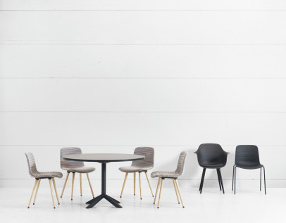 GRADE CHAIR 4 LEGS – kėdės versija keturiomis chromuoto arba dažyto plieno kojelėmis. Kėdės gali būti pilnai plastikinės, turėti sėdimosios dalies paminkštinimą, būti dalinai arba pilnai apvilktos pasirinktu audiniu/ oda. Nenaudojamas GRADE patogu sukrauti vieną ant kitos.