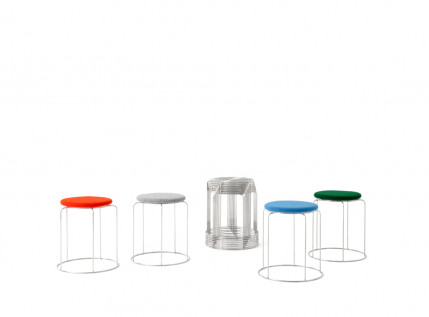 WIRE STOOL – tai legendinio danų dizainerio ir architekto Verner Panton kūrinys. Vizualiai lengva, perregima kėdė genialiai įkūnija geriausias skandinavų dizaino tradicijas: pasakyti tiek daug naudojant tiek mažai. Sudėtos bokštu WIRE STOOL gyvai kuria naujas išraiškos formas bei taip Panton mylimus originalus geometrinius raštus. Spalvingi, prie paviršiaus magneto pagalba tvirtinami paminkštinimai – galimybė personalizuoti bei stilizuoti šį nepakartojamą ikonišką dizainą.