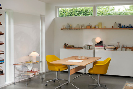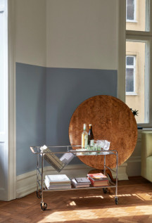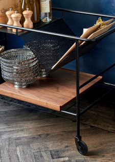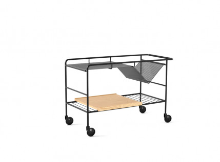 Įkvėpti kūrybiško, tačiau neretai ir chaotiško darbo namuose, Note Design Studio sukūrė daiktų surinkimui ir laikymui tinkantį mobilų sprendimą – vežimėlį ALIMA. Pagamintas iš patvaraus ir funkcionalaus plieno, šis vežimėlis išsiskiria V formos lentyna, kuri leidžia patogiai eksponuoti knygas, katalogus, dokumentus ar kitus darbe naudojamus daiktus, todėl juos lengva surasti ir pasinaudoti prireikus. Metalinę konstrukciją vizualiai sušvelnina natūralios odos bei medžio detalės.