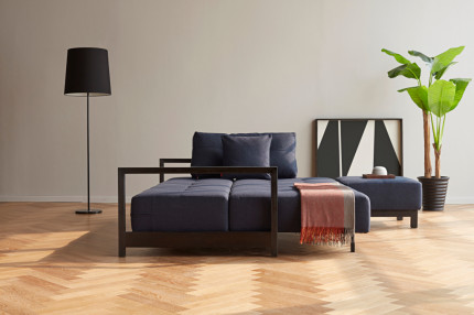 BIFROST – komfortiška sofa-lova su integruotu spyruokliniu Excess pocket spring čiužiniu ir elegantiškais juodos spalvos medžio porankiais. Masyvi ir puikiai atrodanti žvelgiant iš visų pusių – ši sofa mėgsta būti dėmesio centre. Išskleidus miegama dalis suformuojama atlenkiant papildomas kojeles; miegamos dalies plotis leis patogiai ilsėtis dviems. Dizainą papildo ir BIFROST POUF pakojas.