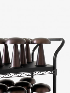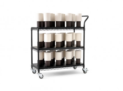 TROLLEY vežimėlis papildo nešiojamųjų šviestuvų MANHATTAN SC52 ir COMO SC53 dizaino koncepciją. Specialūs šviestuvų įkrovimo padėklai dedami ant vežimėlio lentynų leidžia itin efektyviai ir patogiai vienu metu krauti net iki 36 vnt. mažųjų šviestuvų bei juos patogiai išskirstyti ervdvėje. Vežimėlis talpina tris krovimo padėklus.
