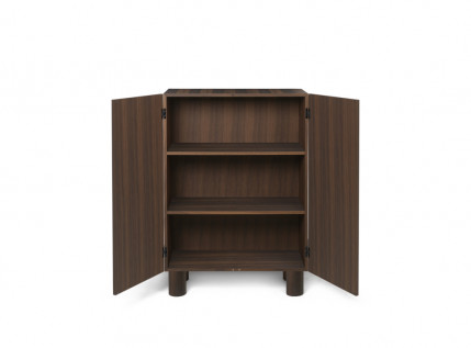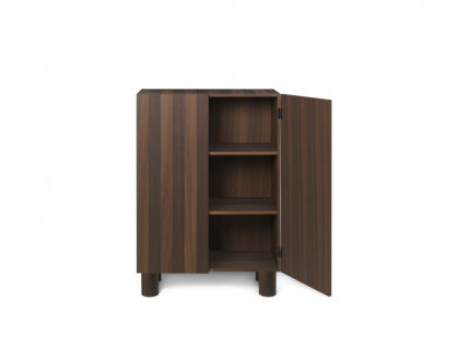 Įkvėptas brutalizmo stiliaus architektūros, POST STORAGE CABINET žavi emocingu ir ekspresyviu dizainu. Minimali baldo konstrukcija padeda išryškinti svarbiausias dizaino detales: meistriškas medžio apdirbimo technikas bei natūralų medienos grožį. Tai, jog komoda yra atidaroma ne išorėje tvirtinamomis rankenėlėmis, bet specialaus integruoto mechanizmo dėka, tik sustiprina monolitiškumo vientisumo įspūdį. Gaminama naudojant FSC™ sertifikuotą medieną, todėl šis dizainas – atsakingas pasirinkimas, ženklinamas „RESPONSIBLE“ žyma.