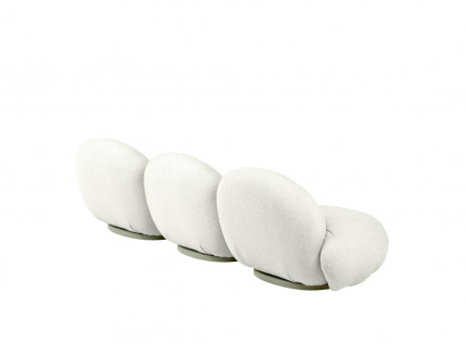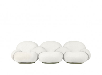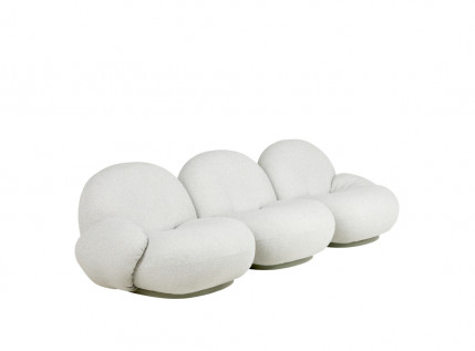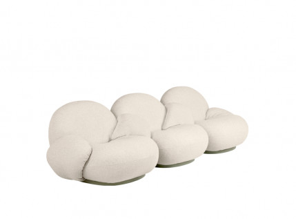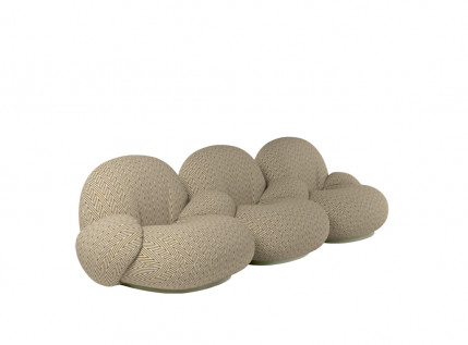 PACHA OUTDOOR THREE-SEATER SOFA WITH ARMRESTS – trivietė modulinė sofa su porankiais. Minkštoji dalis gaminama iš specialau orui pralaidaus, tačiau vandeniui atsparaus audinio, o pagrindas drėgmei atsparios natūralios faneros. Gamintojas taip pat siūlo ir specialius uždangalus, apsaugančius stipresnio nuo lietaus bei purvo.