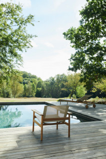 PELAGUS LOUNGE CHAIR – elegantiškas lauko krėslas, gaminamas iš tikmedžio ir vandeniui bei UV spinduliams atsparaus, itin tvirto sintetinio audinio. Neapdorotas tikmedis pasižymi natūraliomis savybėmis, leidžiančiomis lauko baldais džiaugtis ilgus metus. Bėgant laikui tikmedis įgauna sidabriškai pilką atspalvį, pasidengia natūralia patina, tačiau pati mediena išlieka be galo tvirta, jos nepažeidžia nei drėgmė, nei saulė ar vėjas.