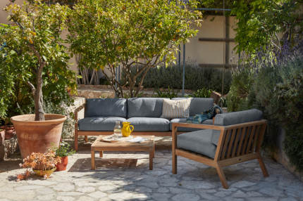 VIRKELYST 2-SEATER | 3-SEATER – dvivietė ir trivietė kolekcijos sofa, nepamainoma įrengiant didesnes lauko terasas arba tuomet kai reikia nei daug nei mažai – vos vienos sofos.