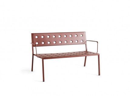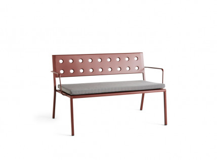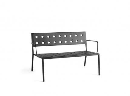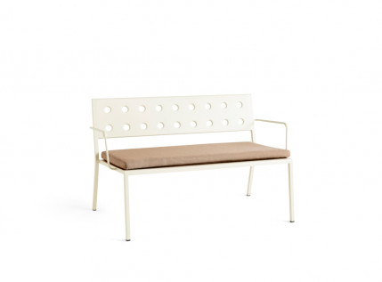 BALCONY LOUNGE BENCH W. ARM – patogus suolelis su porankiais, leidžiantis komfortabiliai ir stilingai mėgautis lauko erdvėmis. Šį dizainą papildo ir specialiai BALCONY sukurti paminkštinimai. Pagaminti iš praktiškojo olefino (olefinas – sintetinis pluoštas), jie išsiskiria neslystančiu, stabiliu pagrindu bei teflonu padengtu vandeniui atspariu paviršiumi.