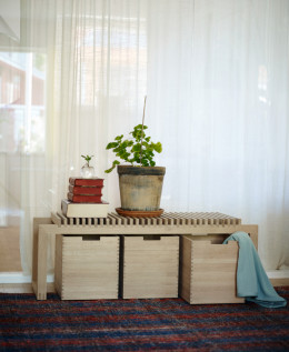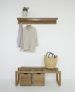Geometriškai išraiškingas CUTTER serijos suolelis visų pirma buvo sukurtas specialiai Walk The Plank parodai. Įkvėptas vokiškojo Bauhaus judėjimo, CUTTER išsiskiria darniu medinukų ritmu bei akcentuoto dydžio ir proporcijos kojelių rėmu. Masyvus, tačiau tuo pačiu vizualiai ir itin lengvas dizainas žavi tiek lauko, tiek ir vidaus erdvėse. CUTTER BENCH – įspūdingas solo, tačiau papildytais kitais CUTTER kolekcijos objektais, vienas suolelis virsta praktiška prieškambario baldų sistema.