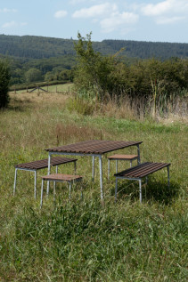 Dizainerio Erwan Bouroullec sukurta TRAVERSE lauko baldų kolekcija, harmoningai įsilieja į bet kurią aplinką. Tvirtas lieto aliuminio rėmas ir termiškai apdorotos uosio medienos lentelės, suteikia baldams tvirtą konstrukciją ir jaukų estetinį vaizdą. Laikui bėgant medinis baldų paviršius įgauna sidabriškai pilką atspalvį, pasidengia natūralia patina, tačiau pati mediena išlieka be galo tvirta. Subtili estetika ir ergonomiškas dizainas TRAVERSE kolekciją paverčia be galo universalia, lengvai pritaikoma tiek viešose, tiek privačiose erdvėse. Tai baldai, kurie su laiku tampa dar patrauklesni.