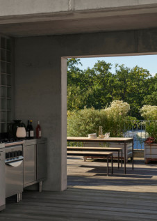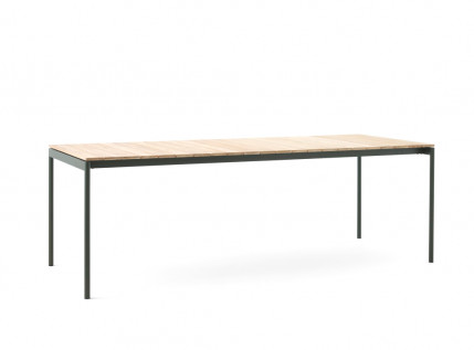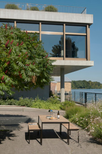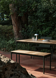 VILLE AV 25 ir AV26 skirtingų dydžių lauko stalai, gaminami iš chemiškai neapdorotos tikmedžio medienos bei plieno kojų konstrukcijos.