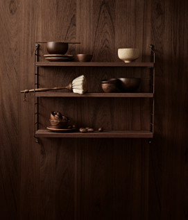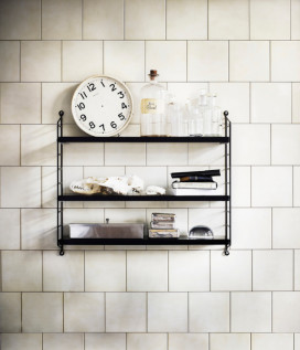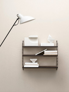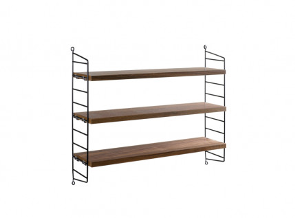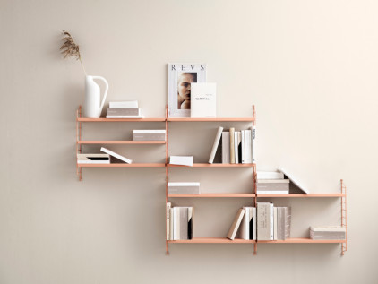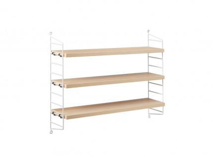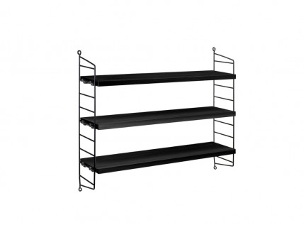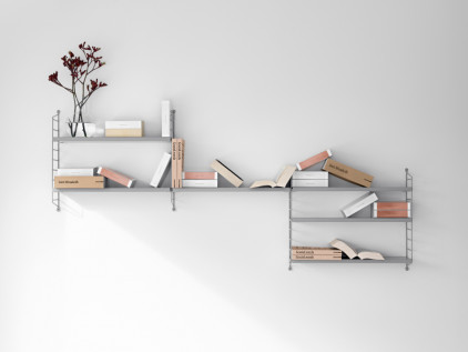 STRING® POCKET – tai pakabinamų lentynų komplektas, kurį sudaro 2 vertikalios vielinės „kopetėlės" bei 3 lentynos. Neribokite savęs pasirinkdami lentynų spalvas, medžiagas bei galimas kombinacijas.