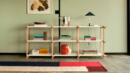 WOODY lentynų serija buvo sukurta kaip stelažų sistema gamintojo inventoriaus laikymui, tačiau sulaukus susidomėjimo ir didelių simpatijų- tapo HAY kolekcijos dalimi.Ši sistema primena kopetėles ir žavi dideliam baldui nebūdingu lengvumu. Atviros lentynos leidžia laikomiems daiktams dalyvauti interjere, o medinio rėmo ir plieninių arba dūminto stiklo lentynų sąjunga kuria modernų, industrinį įvaizdį.