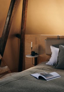 Prie sienos tvirtinama lentynėlė – moderni naktinio stalelio alternatyva, o dizaino studijos Krøyer-Sætter-Lassen sukurtoji CORBEL – dar ir itin stilinga interjero puošmena. Vienijanti natūralias, tačiau savo prigimtimi itin skirtingas medžiagas, žalvarį, ąžuolą bei marmurą, CORBEL žavi daugiasluoksne estetika bei subtiliu dizainu. Silueto inspiracija – architektūrinis elementas, svorį laikanti gembė.