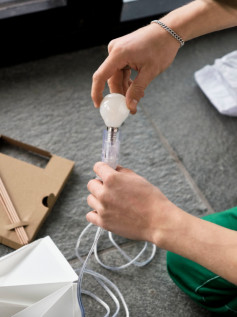 Sukurta olandų kilmės dizainerio, Bertjan Pot, PAPER LAMP kolekcija išsiskiria lakoniška forma bei materija. Šviestuvo gaubtas yra gaminamas iš specialios, popierių primenančios medžiagos, gaunamos perdirbant PET plastiką, o plonytės kojelės – FSC sertifikuotos buko medienos. Dizaino inspiracija – popieriaus lankstinių lengvumas bei peršviečiamas paviršius.