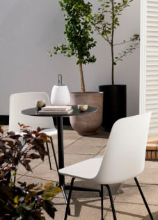 Minimalistinė ir moderni RELY atgimsta ir lauko baldo amplua. Patobulinta praktiškomis detalėmis ji pasiruošusi keliauti į balkonus, terasas ar miesto kavines. Specialūs priedai suteikia apsaugą nuo UV spindulių ir nuo blukimo, o nedidelė ertmė sėdimojoje dalyje užtikrina efektyvų lietaus vandens drenažą. Pagaminta iš 100% perdirbto plastiko ir stiklo pluošto materijos, galimos dvi spalvos: juoda ir balta.