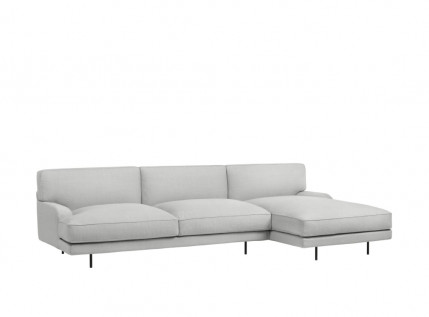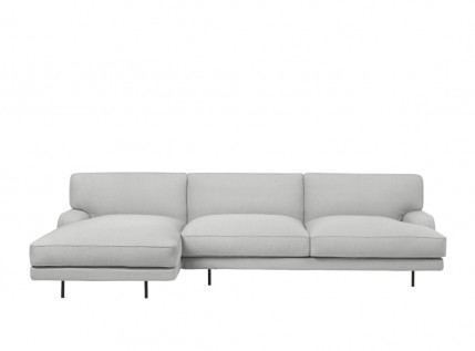 FLANEUR SOFA, 2-SEATER WITH CHAISE LONGUE – modulinės sofos variantas su šezlongu. Jūsų pasirinkimui modelio versija su nuvelkamais arba fiksuotais užvalkalais, gausi audinių/ odos paletė bei 2 plieno kojelių apdailos opcijos.