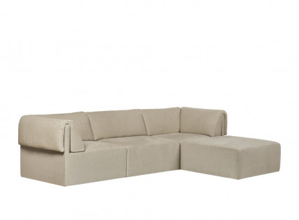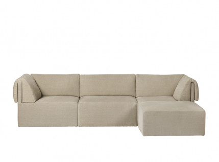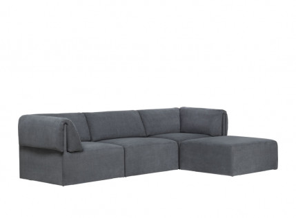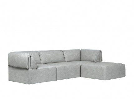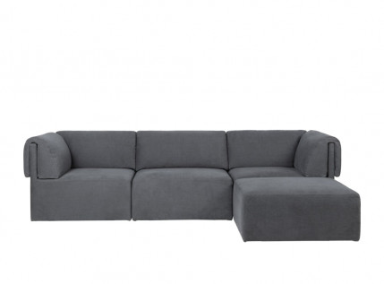 WONDER SOFA, 3-SEATER WITH CHAISE LONGUE – trivietis sofos su šežlongu variantas, sudarytas sujungus du kampinius WONDER CORNER, vieną vidurinį WONDER MIDSECTION bei WONDER POUFFE segmentus.