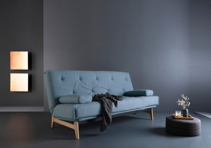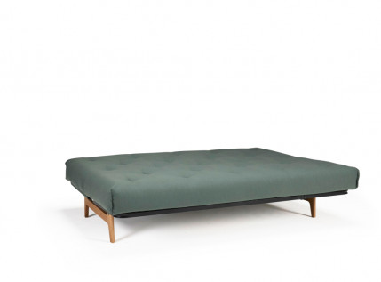 Multifunkcinė Nordic stiliaus lova-sofa: pasirenkamo komforto čiužinys, dvi atlošo padėtys ir galvūgalio pakėlimo mechanizmas leis pasirinkti patogią padėtį įvairioms veikloms, o išskleidus, pasirinkto komforto čiužinys be jokių sudalinimų, užtikrins miego komfortą ir gerą poilsį. Komplektacijoje: itin tvirtas metalinis, multifunkcinis, milteliniu būdu juoda spalva dažytas sofos ir čiužinio pagrindo rėmas, ąžuolo kojelės, aukštos kokybės klijuotos faneros grotelės, nedidelis krepšys patalynei. Čiužinys pasirenkamas iš kelių variantų. Sėdimosios dalies rėmo užvalkalą galima užsakyti papildomai.