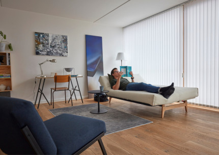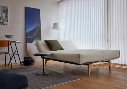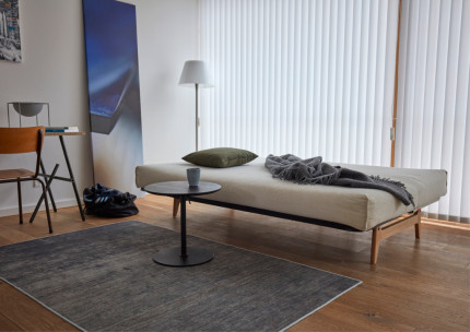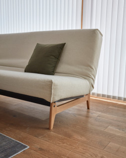 Multifunkcinė Nordic stiliaus lova-sofa: pasirenkamo komforto čiužinys, dvi atlošo padėtys ir galvūgalio pakėlimo mechanizmas leis pasirinkti patogią padėtį įvairioms veikloms, o išskleidus, pasirinkto komforto čiužinys be jokių sudalinimų, užtikrins miego komfortą ir gerą poilsį. Komplektacijoje: itin tvirtas metalinis, multifunkcinis, milteliniu būdu juoda spalva dažytas sofos ir čiužinio pagrindo rėmas, ąžuolo kojelės, aukštos kokybės klijuotos faneros grotelės, nedidelis krepšys patalynei. Nuvilkus čiužinio užvalkalą, čiužinys lieka su vidiniu užvalkalu. Čiužinys pasirenkamas iš kelių variantų. Sėdimosios dalies rėmo užvalkalą galima užsakyti papildomai.