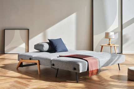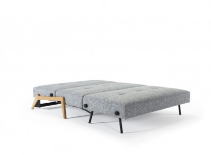 Gamintojas siūlo 140cm arba 160cm pločio sofą- lovą CUBED WOOD, kuri atitinka visus poilsio zonos baldui keliamus reikalavimus, o sėdėjimo bei miego kokybę užtikrina No-zag tipo čiužinio komfortas. Dailios medžio kojelės įrėmina puikiai sukonstruotą minkštąjį dalį, kurią keliais paprastais judesiais lengvai išskleisite į patogią lovą. Jūsų džiaugsmui - funkcija nekompromintuojanti estetikos. Papildomai galima rinktis atramą galvai.