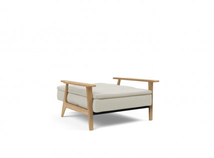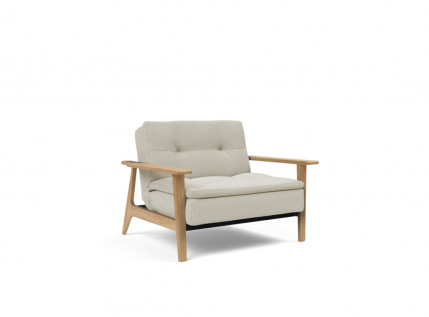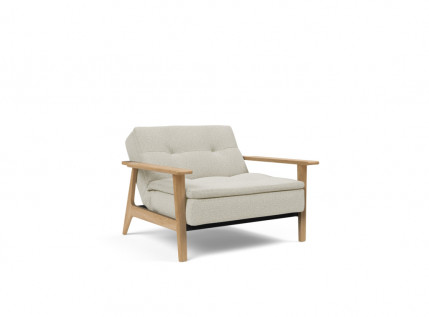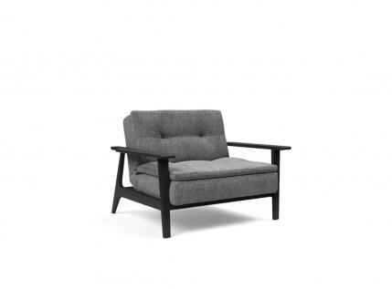 New Nordic stiliaus fotelis, medinėmis kojelėmis ir porankiais. Pilnai išnaudokite gyvenamąją erdvę derindami DUBLEXO sofą su vienu ar keliais foteliais. Fotelį išskleidus ir priglaudus prie sofos suformuosite poilsio zoną su šezlongu, suskleidus- turėsite papildomą vietą atsisėsti. Trijų skirtingų pozicijų, lengvai reguliuojamas atlošas. Čiužinyje integruotos Pocket tipo spyruoklės ir papildomas minkštas sluoksnis sėdimojoje ir atlošo dalyse, leis mėgautis poilsiu. Juodas plieninis rėmas, lakuoto ąžuolo arba juodai dažyto medžio kojelės ir porankiai.