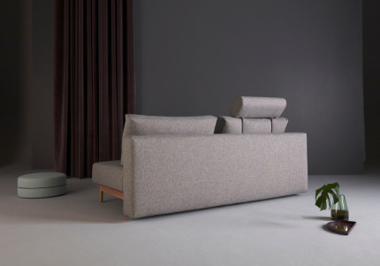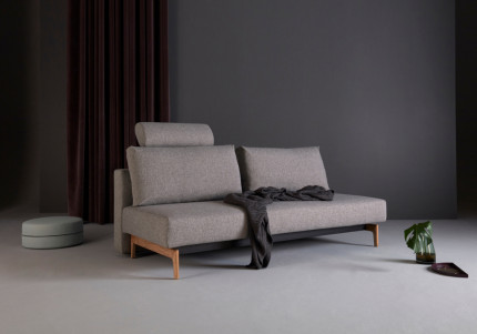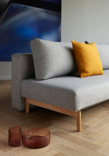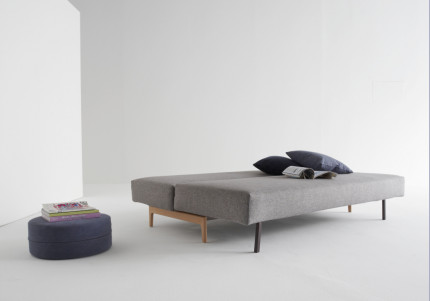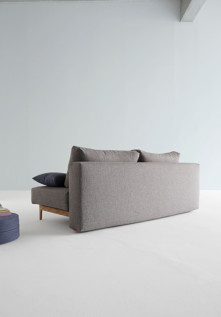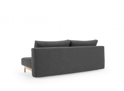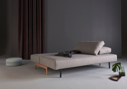 Švaraus ir elegantiško dizaino sofa-lova, puikiai tinkanti nedidelėse gyvenamosiose erdvėse. Čiužinyje integruotos Pocket tipo spyruoklės ir atlošo pagalvės, užpildytos ančių plunksnų mišiniu, leidžia patogiai ilsėtis sėdint. Lakuoto ąžuolo kojelės ir juodo plieno rėmas. Krepšys patalynei. Papildomai galima pasirinkti atramą galvai.