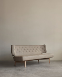 Išskirtinis ir retas Vilhelm Lauritzen dizainas, RADIOHUS SOFA atgimsta Menu rankose. Sukurta specialiai paties architekto suprojektuotam, Radiohuset ( lietuvių kalba – radijo namas) pastato interjerui, kuriame šiais laikais gyvuoja Karališkoji Danijos muzikos akademija, ši sofa visa savo esybe alsuoja modernaus funkcionalizmo dvasia. Kerinčiai žvelgianti iš visų kampų RADIOHUS SOFA išsiskiria elegancija, unikaliu siluetu bei charakteringomis detalėmis. Atvira konstrukcija svetingai kviečia prisėsti ir pasijusti daniškojo dizaino laiko neskaičiuojančias galias.