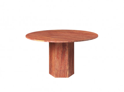 EPIC DINING TABLE ROUND | TRAVERTINE – žymi pietų stalą apvaliu, dosnaus dydžio stalviršiu. Pagaminta iš natūralaus travertino akmens, galimi trys atspalviai: neutralus baltas, išraiškingas pilkasis bei sodrus molio raudonio.