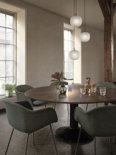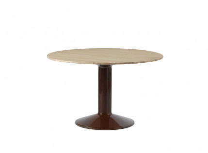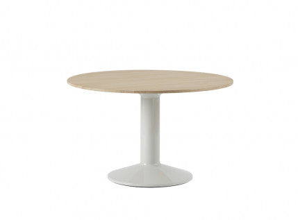 MIDST stalo pavadinimas („midst" iš anglų kalbos "viduryje") nurodo į namų centrą, kur stalas tampa pagrindine ašimi, traukos tašku, vieta gurmaniškoms kelionėms, ilgiems pasisėdėjimams ir bendravimui. Apvali stalviršio forma suteikia erdvumo pojūtį – čia visada atsiras vietos dar vienam svečiui. Rafinuotas dizainas, kontrastingos medžiagos ir charakteringas siluetas leidžia pritaikyti stalą įvairausiose erdvėse ir kontekstuose. Jūsų pasirinkimui- tvirta, blizgiai dažyta, kolonos formos plieno bazė, derinama su matiniu baldinio linoleumo ar tvirto ąžuolo stalviršiumi ir trys stalo dydžiai.