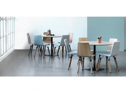 STAY stalų kolekcija pasiūlo sprendimus įvairiausioms erdvėms bei kontekstams, nes jos spektre platus stalviršio skersmens bei pagrindo aukščio pasirinkimas. Subtilus, minimalistinis dizanas, nustebina kontrastuojančiomis savybėmsi: lieknas, bet stabilus. Plieninis stalo pagrindas gali būti chromuojamas arba dažomas RAL paletės spalvomis.