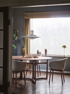 Stalas DROP LEAF - tikrasis šiuolaikinės klasikos pavyzdys, naujai atgimęs &Tradition rankose. Sulankstomas ir išlankstomas lengvu vienos rankos judesiu, DROP LEAF be galo praktiškas ir versatilus. Įdomi dizaino detalė - rėmo formos kojos - suteikia šio stalo estetikai išskirtinį charakterį, o tobulai apdirbto medžio plastika jaukumo ir švelnumo pojūtį.