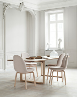 Medžio masyvo gerbėjams, Fritz Hansen bendradarbystė su danų dizainere Cecilie Manz. ESSAY ™ – stalas be išvedžiojimų. Subtili estetika akcentuojama išraikškinga „O“ formos koja, kurios perregimumas vizualiai palengvina masyvų baldą.