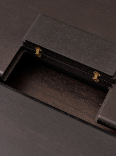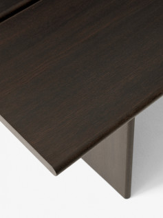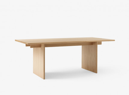 Trindama ribą tarp skandinaviško ir japoniško dizaino filosofijų, ITA kolekcija žavi natūraliu medienos grožiu, jos tekstūra ir paprasta, bet elegantiška išraiška. ITA TABLE valgomojo stalą sudaro dvi atskiros stalviršio plokštumos, grakšiai nugulusios ant plačių medinių kojų, paviršiai dengti ąžuolo lukštu, o briaunos gaminamos iš ąžuolo masyvo, užtikrinančio ilgaamžį baldo naudojimą ir vizualinį išskirtinumą. Jūsų pasirinkimui - du stalo dydžiai ir dvi apdailos- lakuoto ąžuolo ir tamsiai beicuoto ąžuolo.