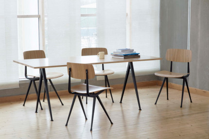 Iš pjaustyto plieno lakštų konstrukcijų gaminami stalas PYRAMID ir kėdė RESULT – lengvai pritaikomi, lengvi ir tvirti. Šių baldų originalai sukurti 1950-aisiais, o 2017 m. HAY kartu su „Ahrend“ atnaujino šios kolekcijos gamybą. Praėjusio amžiaus viduryje pjaustytų plieno lakštų naudojimas baldų gamyboje buvo laimėjimas technologijų srityje, suteikusi galimybę kurti įvairių formų gaminius. Šiandien šie baldai (kaip kolekcija ir atskirai) vertinami dėl ekologiškų gamybos sąnaudų, paprastos konstrukcijos ir originalaus dizaino. Jų funkcionalumu ir estetiniu lengvumu realiame gyvenime galėjo įsitikinti jau kelios kartos.