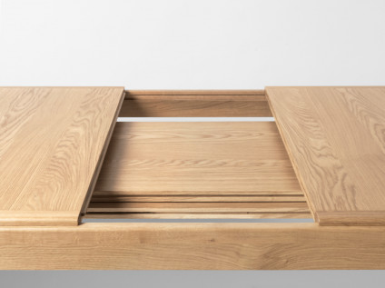 S-TABLE | EXTENDABLE – patogus stačiakampio formos pietų stalas, išsiskiriantis galimybe jį prailginti. Patraukus kraštus, stalas gali būti sudalinamas į dvi dalis, o atsiradusi ertmė užpildoma papildomu įdėklu. Tokiu būdu kompaktiškas šeimyninins stalas pritaikomas ir didesniems susibūrimams.