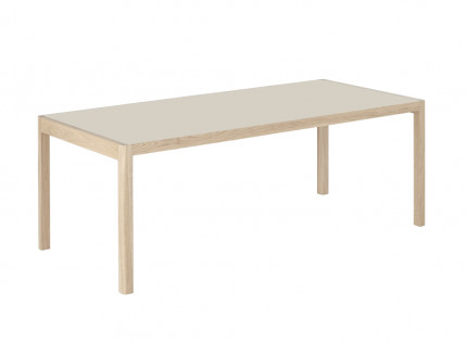 Pradžioje buvo kėdė, paskui kavos stalelis, o dabar dizainerė Cecilie Manz bei gamintojas Muuto pristato ir WORKSHOP serijos pietų stalą. Kaip ir kiti šios kolekcijos pirmtakai WORKSHOP TABLE – idėjos bei materijos grynuolis, žavintis santūriu charakteriu ir išieškotomis detalėmis. Lygus stalviršis, panardintas tarp keturių tvirto ąžuolo kojų, ir vos pastebimi sklandūs sujungimai pasakoja vaizdingą savo gimimo istoriją.
