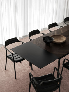 VIPP TABLE – itin patvarus ir stabilus pietų ar virtuvinis stalas, kurios dizainas išsisikiria išgryninta stalviršio, rėmo ir kojos simbioze. Iš pažiūros paprastas ir suvokiamas, šis stalas sužavi tobulomis atlikimo detalėmis bei išskirtinės kokybės ilgaamžėmis medžiagomis. Apvalintų kampų stalviršio apdailos variantai: ševron raštu margintas ąžuolo lukštas arba presuota akmens keramika. Galimi du dydžiai – MEDIUM ir LARGE, tačiau papildomas prailginimo segmentas VIPP EXTENSION PLATE leidžia stalą pritaikyti besikeičiantiems poreikiams.