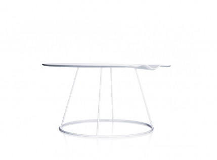Dizainerės sumanymas- stalviršyje suformuoti bangelę, lyg pučiant švelniam vėjeliui subanguota staltiesė, kuri nuolat primintų šiltas vasaros akimirkas. Swedese meistrų patirties ir meistriškumo dėka pavyko įgyvendinti įstabų dizaino sumanymą- medžio paviršius plevena tarsi audinys. Serijoje dviejų dydžių ir kelių apdailų staleliai, kuriuos komponuojant rasite Jūsų erdvei tinkamiausią kompoziciją.